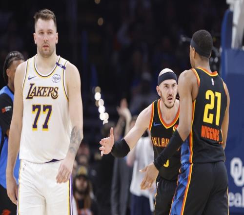 湖人主场迎战雷霆,亚历山大和东契奇都不打,湖人先发:詹姆斯、八村塁、艾顿、拉拉维亚、斯玛特!雷霆先发:杰伦·威...