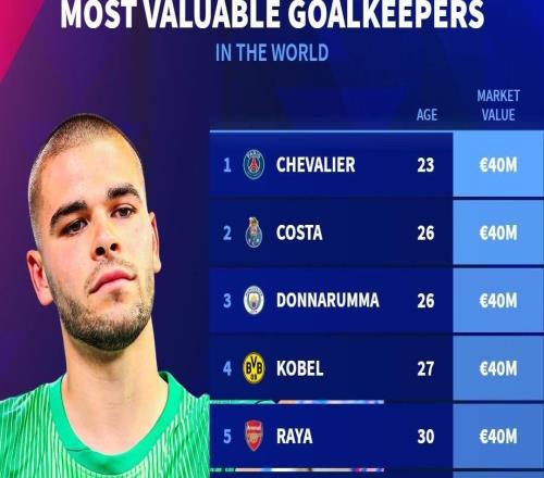 在完成最新一次身价更新后,德国转会市场网站列出了世界足坛门将身价榜,大巴黎门将舍瓦利耶以4000万欧位列第一...
