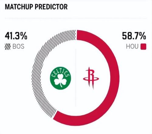 赛前,美媒ESPN对本场比赛进行了胜率预测,火箭队胜率高达58.7% ,凯尔特人胜率则仅有41.3% ,差距还挺明显。
