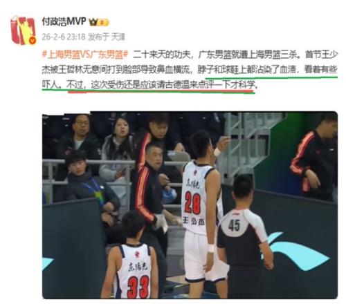 看到这样的情况,CBA名记付政浩也是发文喊话上海队外援古德温:王少杰这次受伤,看着就吓人,古德温应该要站出来点评一下才科学……