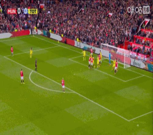 比赛第37分钟,曼联角球精妙配合,姆伯莫推杆破门,曼联1-0领先热刺!