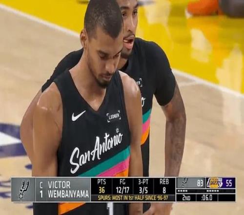 这种文班亚马算是打开心了。首节就9中8获得25分,半场37分,而全场比赛打了26分钟就获得了40分。因为湖人内线没什么防守能力,文班亚马只要进去就可以进球,再加上三分命中率还非常好,他保持了完美的输出。