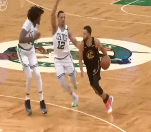 侧步是找角度,考验的是平衡。所以侧跳三分的高手,如库里,如塔图姆,都是轻盈平衡型。