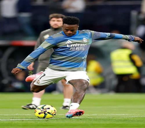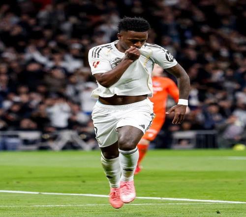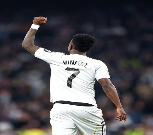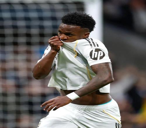90' 维尼修斯头槌破门被吹,错失帽子戏法。