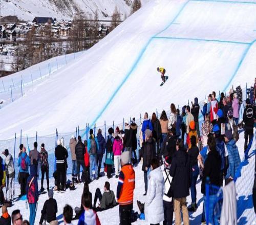 利维尼奥的雪道在阳光下泛着冷光,雪面被一趟趟滑行刻出清晰的轨迹。这座山谷小镇的两侧,阿尔卑斯山脉轮廓分明。