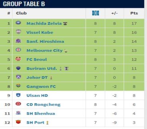 以2比3的比分负于町田泽维亚之后,成都蓉城8轮之后以6分排名东亚区第10位,无缘晋级淘汰赛。加上上一轮就被淘汰出局的上海申花、上海海港,三支中超球队携手出局,而且分别排名东亚区倒数后三位。