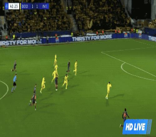 整个上半场,国米完成了10次射门,博德闪耀只有3次射门,两队暂时战成了1-1。